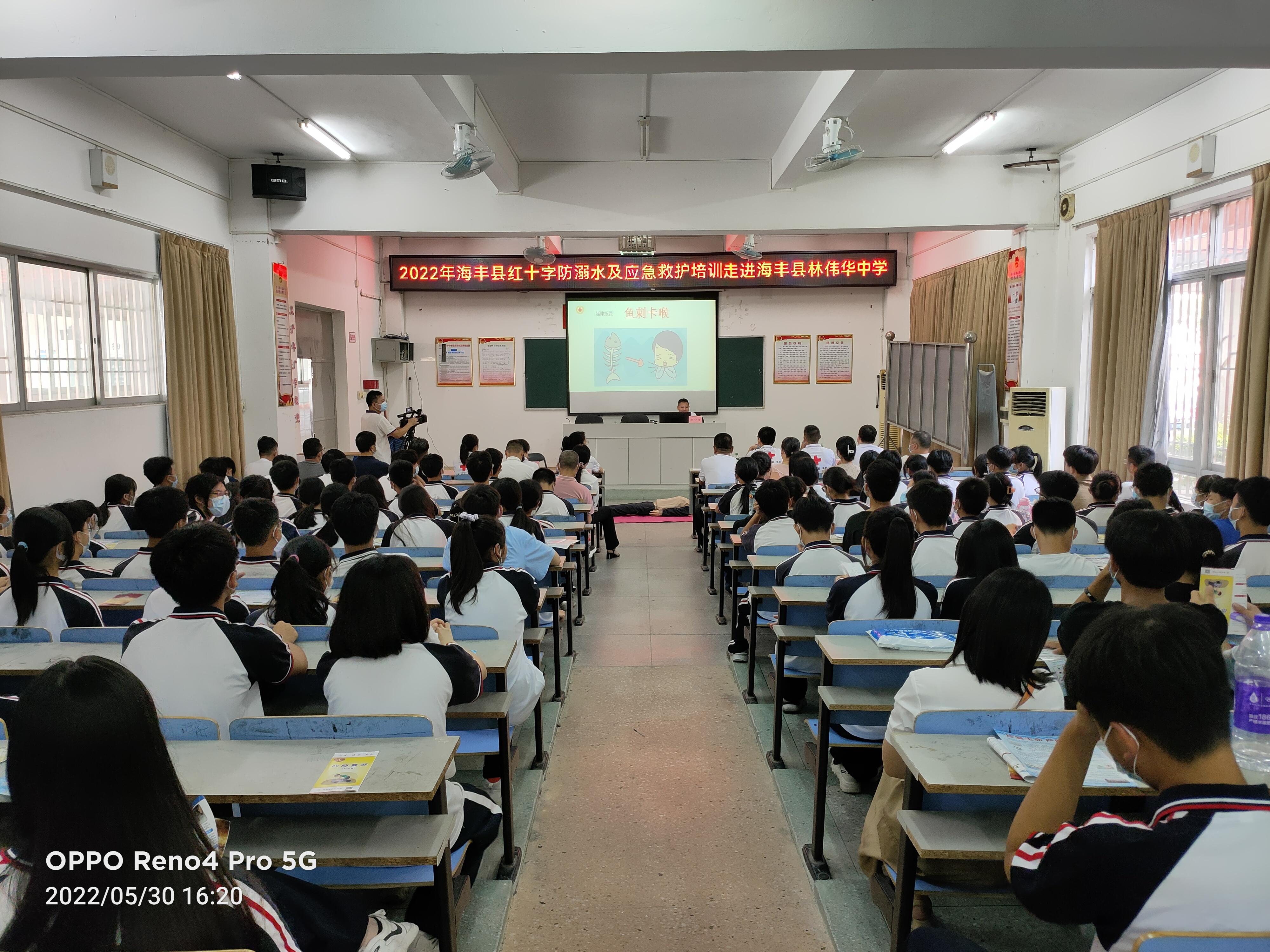 目前正值盛夏,暑假即将来临,溺水伤亡事故又到了易发高发季节。为增强学生的安全意识、避险自救能力和掌握一定的急救知识,最大限度预防溺水事故发生,安全度夏,连日来,海丰县红十字会联合县应急管理局先后在县实验小学、县林伟华中学开展防溺水及应急救护培训进校园活动,共有700多师生聆听了讲座。