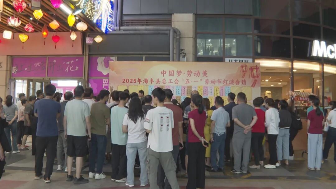 5月1日晚,县总工会在天虹广场举办“中国梦·劳动美”庆“五一”灯谜会。活动现场设置数百条融知识性、趣味性于一体的灯谜,内容涵盖劳动术语、工会知识、红色文化等,吸引众多市民群众踊跃参与。大家或驻足沉思,或热烈讨论,在猜谜中感受传统文化魅力,营造了“劳动光荣、奋斗幸福”的节日氛围,进一步凝聚职工力量,激发建功新时代的热情。