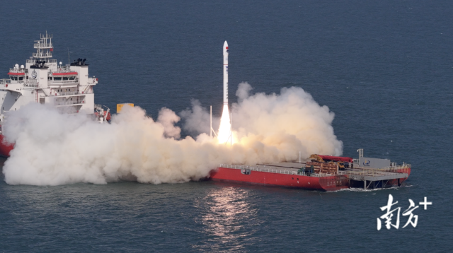 5月19日,15时38分许,山东日照港畔,“海陆丰号”卫星成功发射!现场市民传来阵阵欢呼声,纷纷用手机记录下这历史性瞬间。