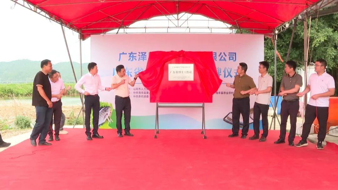 近日,广东泽康水产养殖有限公司广东省博士工作站揭牌仪式在海丰县赤坑镇岗头村举行,为实施人才强县战略提供人才支持和智力保障,助推县域经济持续稳健发展。市、县相关部门负责人,农业、水产养殖领域专家等参加仪式。