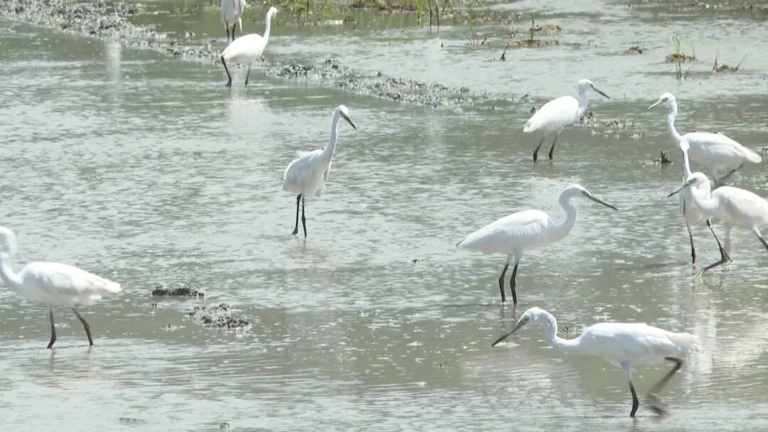 海丰湿地:鹭鸟成群 越冬栖息