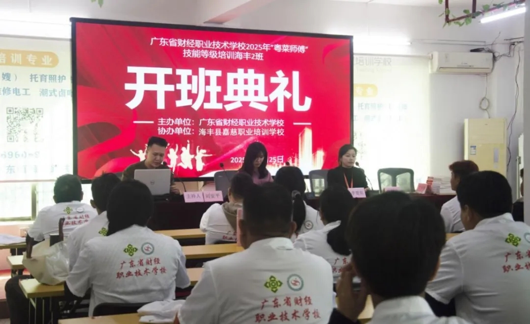 为深化“粤菜师傅”工程培训工作,进一步助力乡村振兴,11月25日上午,由广东省财经职业技术学校主办,海丰县嘉慈职业培训学校协办的2025年“粤菜师傅”技能等级培训班在海丰县嘉慈职业培训学校举办。