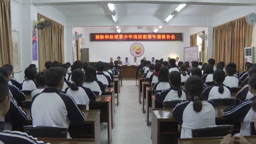12月5日,由海丰县委组织部、县委政法委指导,县关工委、县教育局、团县委联合主办的预防和治理青少年违法犯罪专题报告会在可塘中学举行,为全校师生送上一堂法治教育课,护航青少年健康成长。