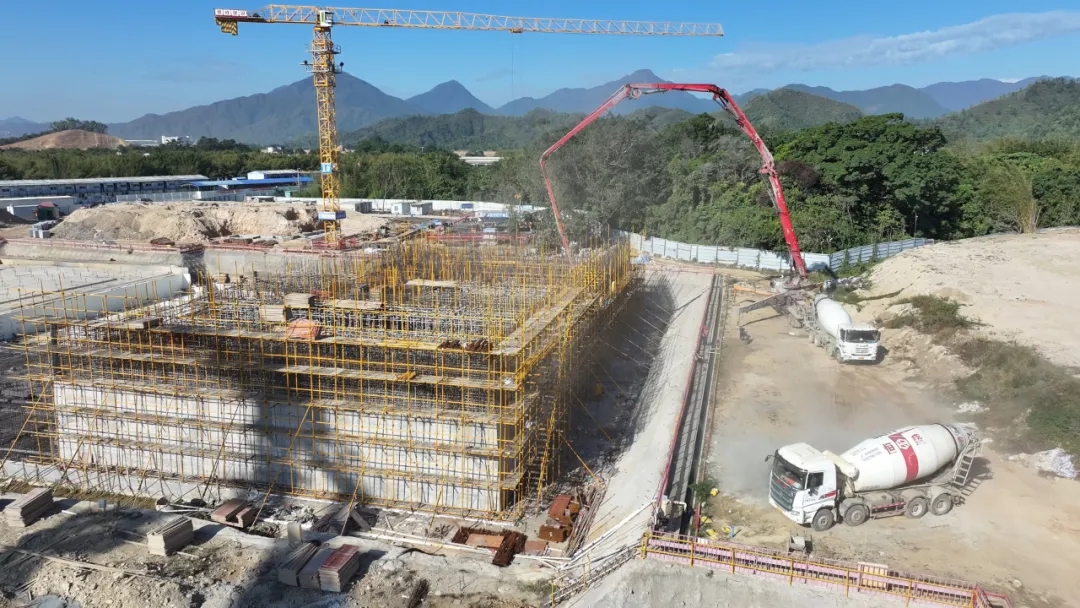 目前,深汕合作拓展区污水处理厂场地清表、围挡搭建、门卫室、生活区及办公区建设等基础性工程已完成;工程灌注桩、基础搅拌桩、地基开挖、沉淀池、水解酸化池等核心构筑物施工已顺利收官,淤泥处理中心首层主体结构已实现封顶;其它各项建设按计划稳步推进。