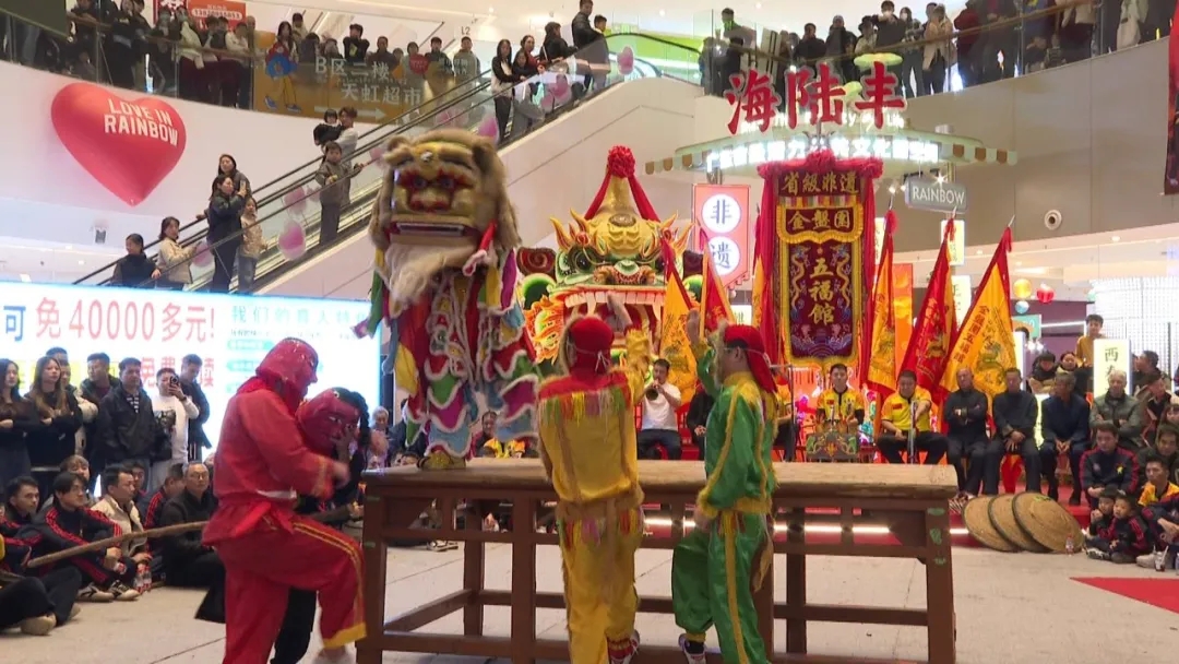 近日,由县文广旅体育局指导、县文化馆主办的“瑞狮纳五福、喜乐满海丰”2026年省级非遗代表项目金盘围五福狮舞展演在海丰天虹购物中心举行,为群众献上一场接地气、有温度的文化大餐。
