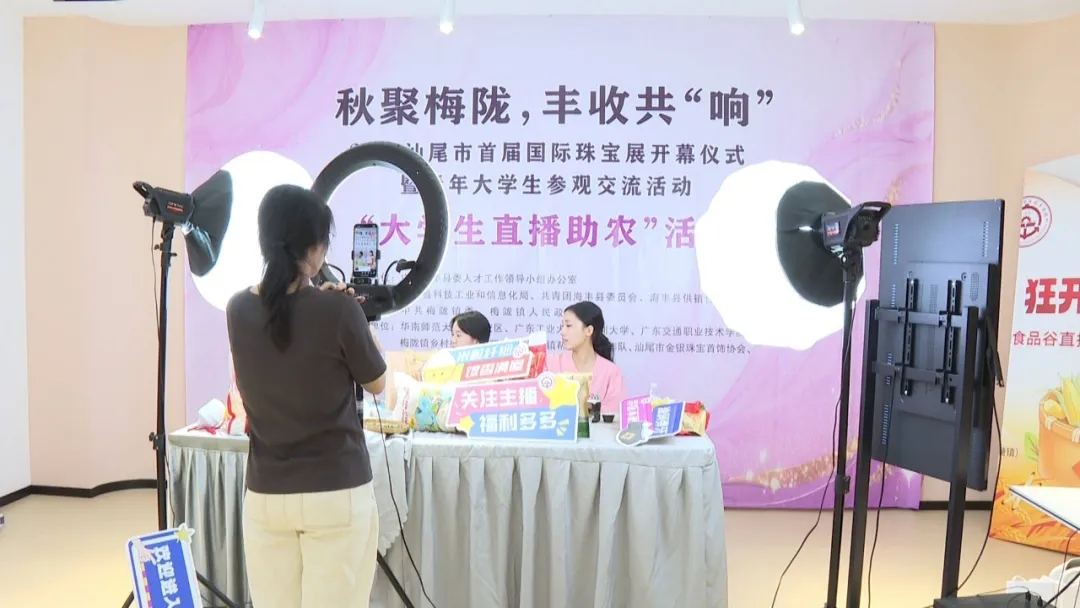本次活动紧密依托首届汕尾国际珠宝展开幕这一黄金契机,也响应省“百万英才汇南粤”行动计划号召,目的就是要搭建一个“青年人才与产业发展双向奔赴”的平台,将最前沿的产业现场变成大学生们最生动的实践课堂。通过“双百行动”校地合作的深入推进,我们不是简单地把学生“请进来”,而是精准地让他们“融进去”——融进梅陇首饰产业链中,从设计、生产到销售,实现全流程感知;也希望通过直播助农实践,让青年人才亲身感受这里的乡村活力与发展诚意,真正把秋聚梅陇做出“丰收”的反响,把“春夏秋冬,相约海丰”做成培育大学生人才的重要品牌。