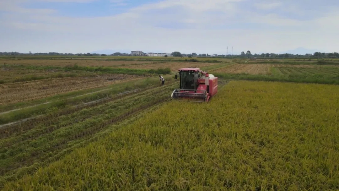 在梅陇镇梅东村的稻田里,饱满的稻穗压弯了稻秆,金灿灿的稻穗在阳光下随风起伏,氤氲的稻香沁人心脾。伴随着阵阵机器的轰鸣声,一台台收割机来回穿梭,高效完成切割、脱粒等工序。