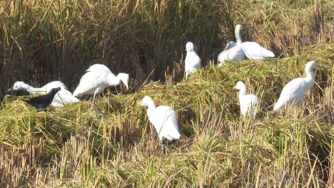 海丰梅陇:晚稻收割庆丰年 众鸟翔集常“做客”