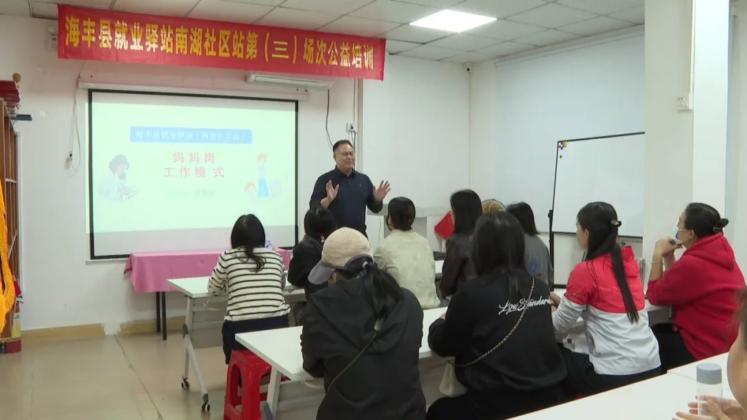 12月6日,海丰县就业驿站南湖社区站联合广东田元万佳农业科技发展有限公司举行“妈妈岗”就业创业技能公益培训。通过“短期培训+社区实践”的模式,帮助灵活就业人群掌握新技能,实现顾家与增收兼得的就业新路径,有效打通本地农产品社区销售的全新渠道。