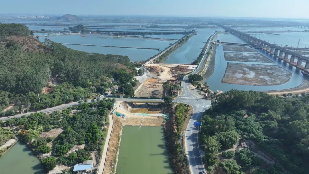 据介绍,赤坑镇羊古岭水闸重建工程是海丰县级重点民生项目,属于排涝挡潮三级中型工程。项目总投资约2.4千万元,水闸设计防洪标准为50年一遇,排洪标准为10年一遇。工程设计由拦河闸、左右岸引堤、基础底板、闸墩、消力池、挡墙等建筑物组成。目前,已完成总工程量的30%。