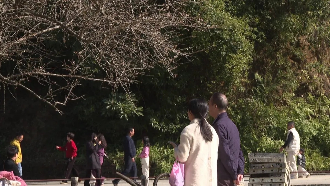 此次梅花盛花期恰逢元旦假期,日均游客量已接近5000人次,迎来客流高峰。为保障游客安全有序游览,黄羌林场迅速启动应急保障机制,通过在景区内增设警示标识,安排专人引导游客停放车辆和文明赏花,提醒大家注意环境卫生,共同维护良好的游览环境。