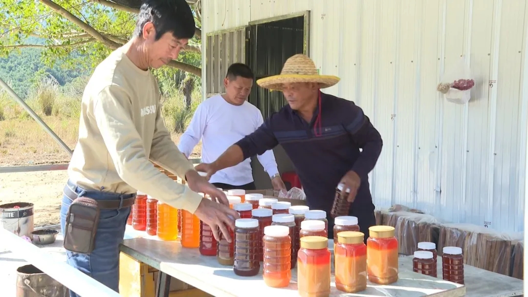 据悉,冬蜜采收期为每年11月至次年元旦,每个蜂箱可稳定产蜜8至10斤,每斤售价约50元。凭借优良品质,这里的冬蜜不仅畅销广州、深圳等珠三角,更远销香港地区,市场口碑好。不少蜂农还通过“传帮带”模式,带动周边群众加入养蜂行列,持续扩大养殖规模。