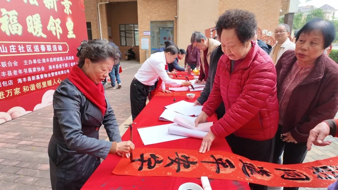 海丰县附城镇云岭山庄社区:挥春送祝福 增进邻里情