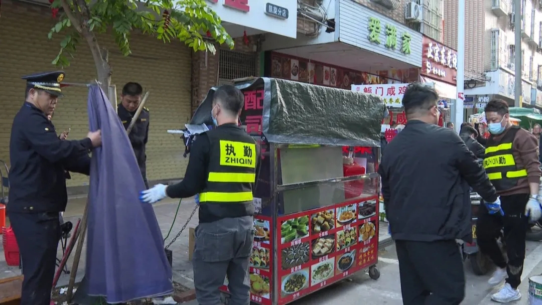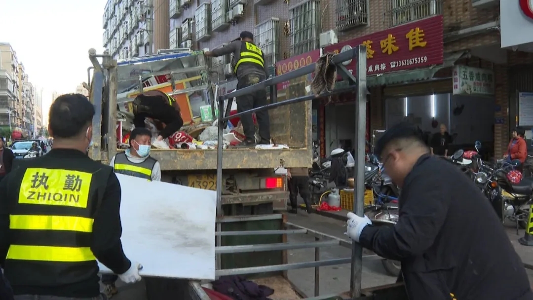 在育英路凯旋花园路段、解放北路,海城镇及县城市管理和综合执法局对流动摊贩占道经营行为进行了规范劝离,对长期占用公共空间的水泥墩、石墩、违规地锁及各类杂物进行了全面清障。执法队利用专业工具,将占道手推车、水泥墩、遮阳棚等杂物进行破拆、清运,真正实现“还路于民”。同时,还逐户向沿街商户重申“门前三包”规定,引导商户自觉维护市容秩序。