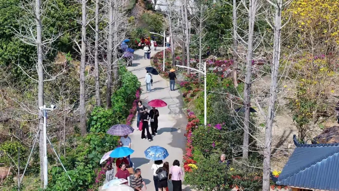 循着山路漫步、花海与人潮相映成趣。游客徜徉于花海之中,或定格美好瞬间、或沉醉于山野清风。