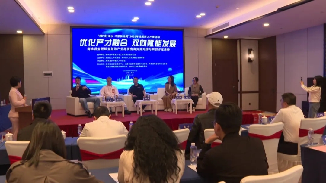 3月16日,2026年汕尾市人才周系列活动之一的“优化产才融合、双向赋能发展”海丰县金银珠宝首饰产业跨境出海资源对接与共创沙龙活动在海迪温德姆酒店举办。活动聚焦海丰金银珠宝首饰产业发展与人才培育核心需求,搭建多方交流对接平台,为海丰高质量发展汇聚人才动能、明晰融合路径,推动人才与产业同频共振、双向赋能。