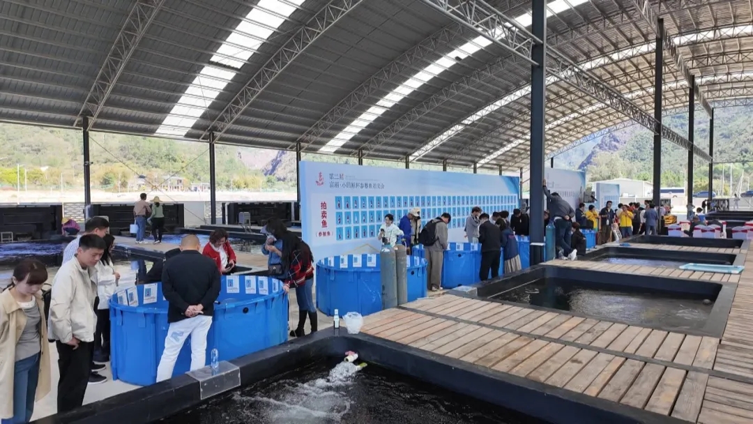 春日的海城镇埔仔洞村,青山环抱、碧水潺潺。富丽锦鲤产业园内,一池池清澈碧水波光粼粼,红白、大正、昭和等名贵锦鲤在水中悠然游弋。来自全国各地的锦鲤爱好者、行业专家、经销商及文旅达人齐聚一堂,有序参与预展、竞价、成交等环节。