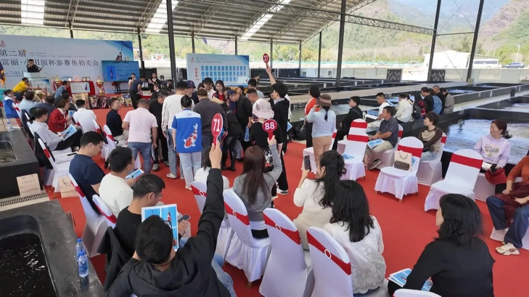当天举办的第二届富丽·小田原杯参赛鱼拍卖会,经过多轮激烈竞价,100多尾优质锦鲤全部顺利成交,拍卖总额超100万元,其中一条拍价为9.5万元,彰显了市场对海丰锦鲤品质的高度认可,也释放出海丰锦鲤产业强劲的市场活力。