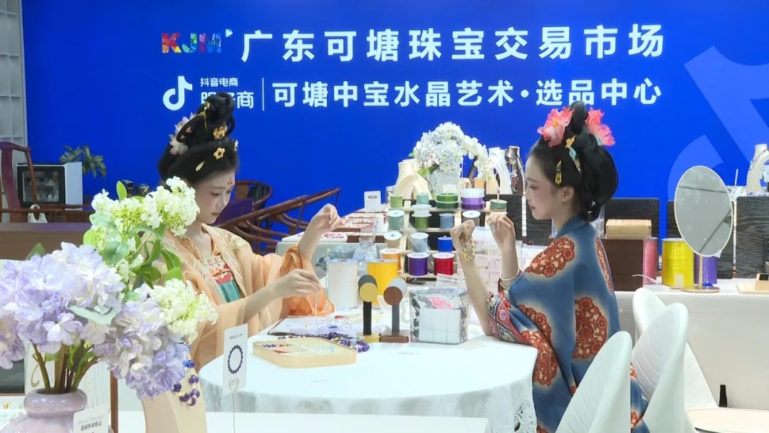 仪式上,可塘镇、广东可塘珠宝交易市场及海丰抖音电商直播基地等相关负责人共同登台,宣布集市正式启幕。活动中,国风表演、沉浸式DIY体验展示轮番上演,传统美学与现代珠宝交相辉映,吸引市民游客驻足选购、互动体验。