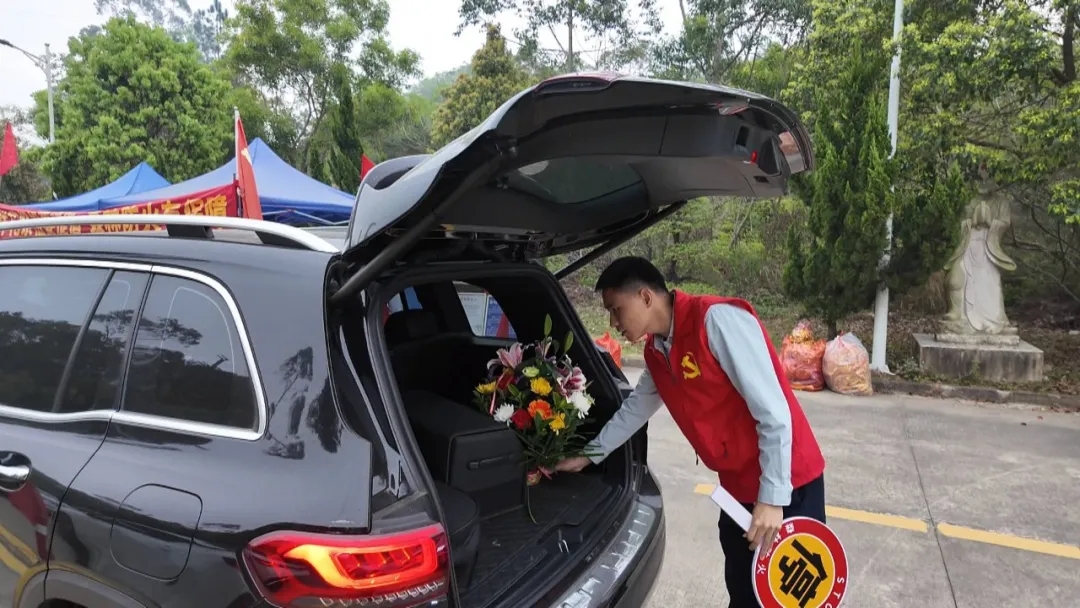 在赤坑镇福安墓园、大湖镇大德陵园等地,入口处车流人流有序通行,园内道路干净整洁,“文明祭扫 平安清明”“鲜花祭故人 环保寄哀思”等宣传标语醒目亮眼。前来祭扫的市民们,大多手捧鲜花、黄白菊束,轻声追思,全程无烟无火,氛围庄重又温馨。