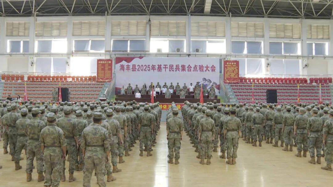 5月30日,海丰县2025年基干民兵集合点验大会在县体育馆举行。汕尾军分区战备建设处上校处长王炳乾,县委常委、县人武部上校政治委员李冲,副县长、县公安局局长吴坚有等出席活动。
