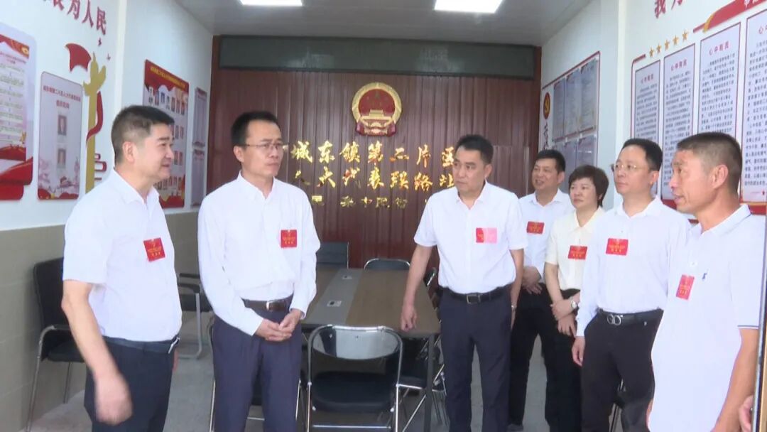 在城东镇第二片区人大代表联络站,孙鹏、陈岳文深入了解县、镇人大代表履职情况,倾听关于“加强推进城东镇关东村委关后同心路至城东中心小学路段硬底化建设”“增建学校解决中小学学位紧缺问题”“壮大赤山村集体经济”等方面的意见和建议。