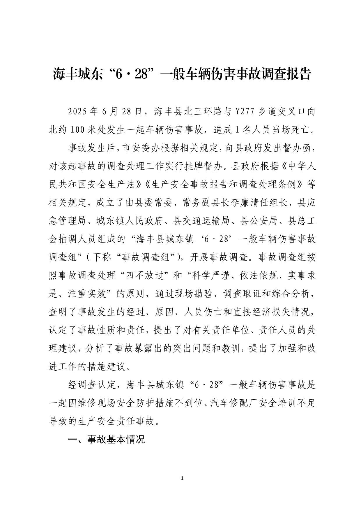 首页 > 海丰县人民政府门户网站 > 重点领域信息公开 > 安全生产 > 事故调查报告