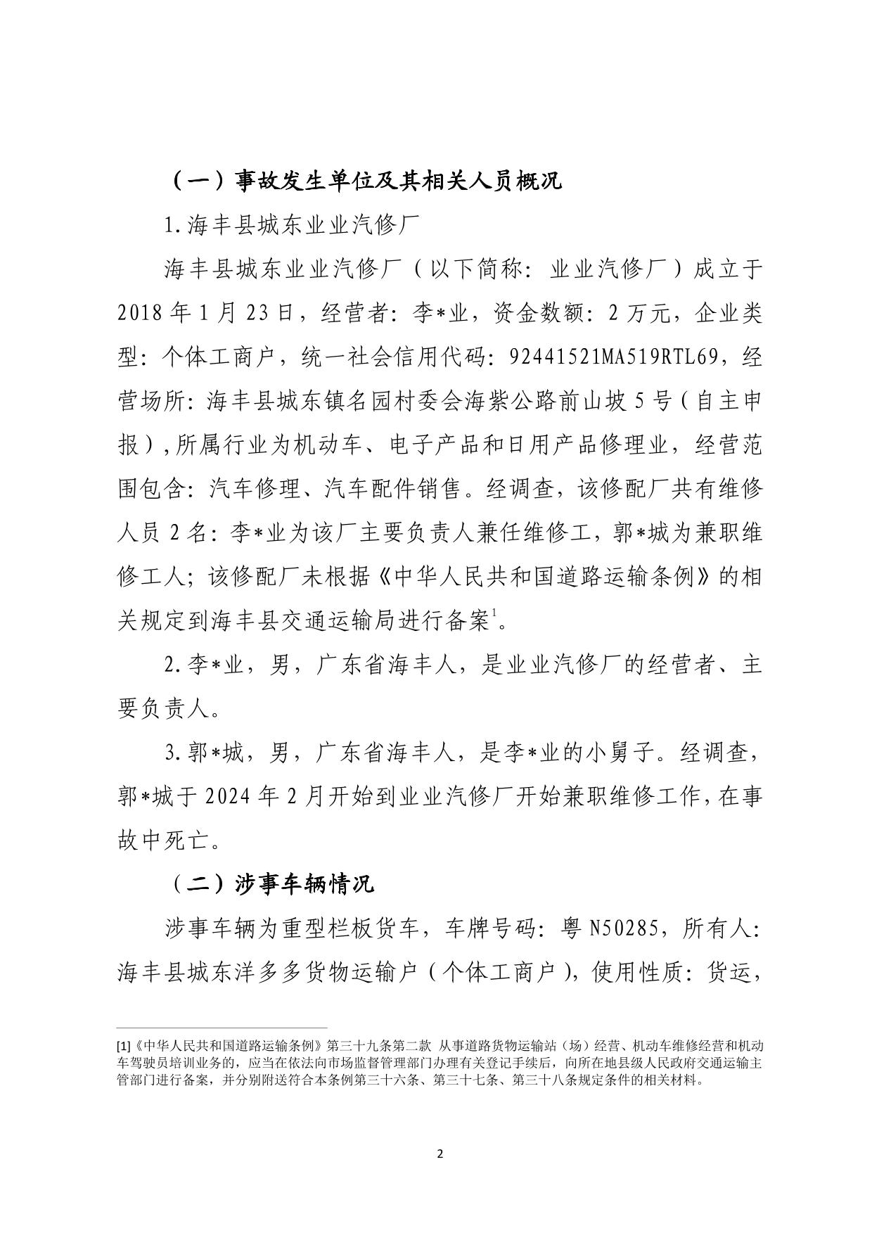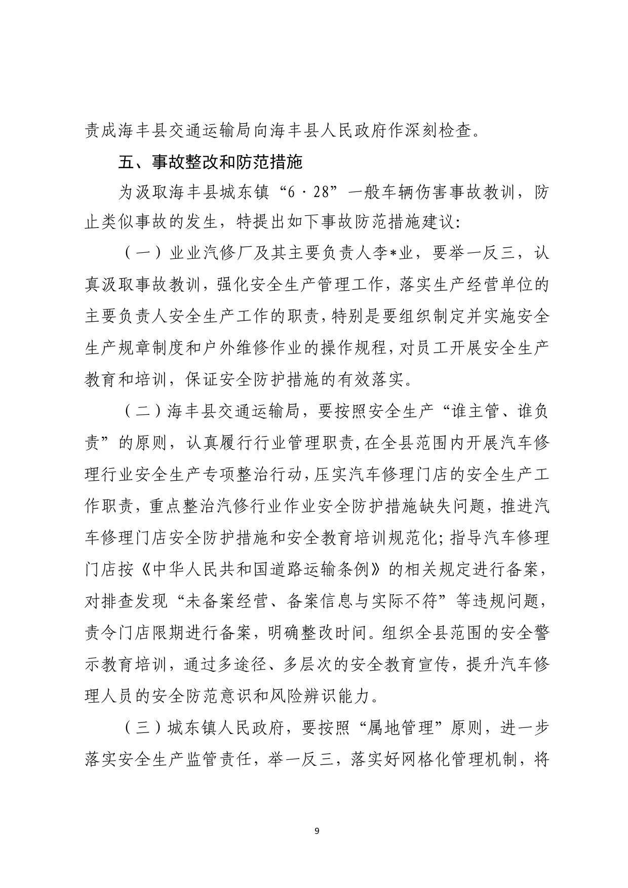 海丰城东“6·28”一般车辆伤害事故调查报告