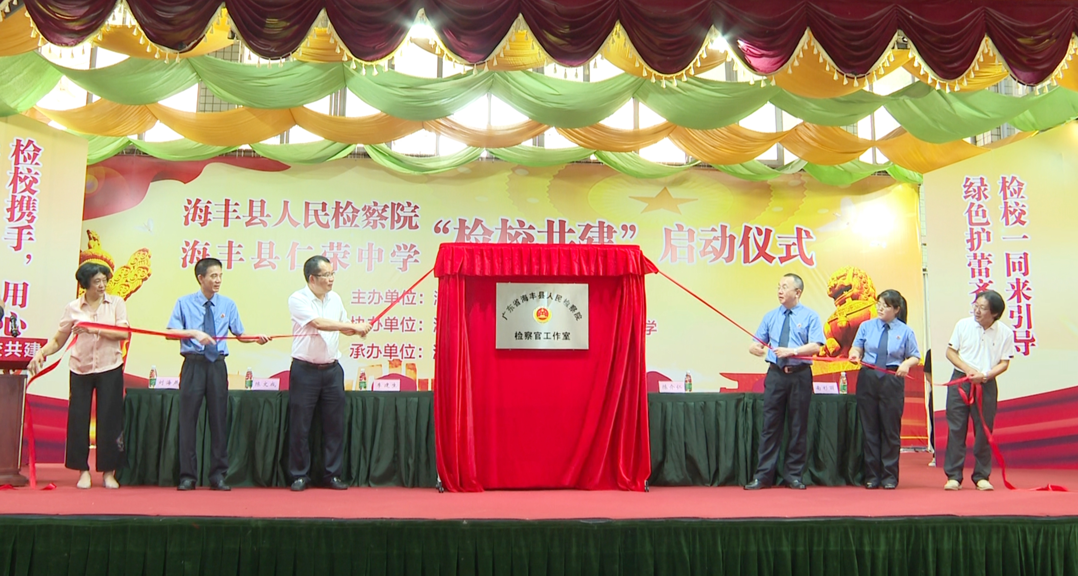 6月18日,全市第一家检察院驻学校检察官工作室——海丰县人民检察院驻仁荣中学检察官工作室揭牌成立,标志着“一号检察建议”落到实处,进一步加强新时代法治校园建设,全面推进依法治校工作。县检察院检察长刘孝友出席揭牌仪式。