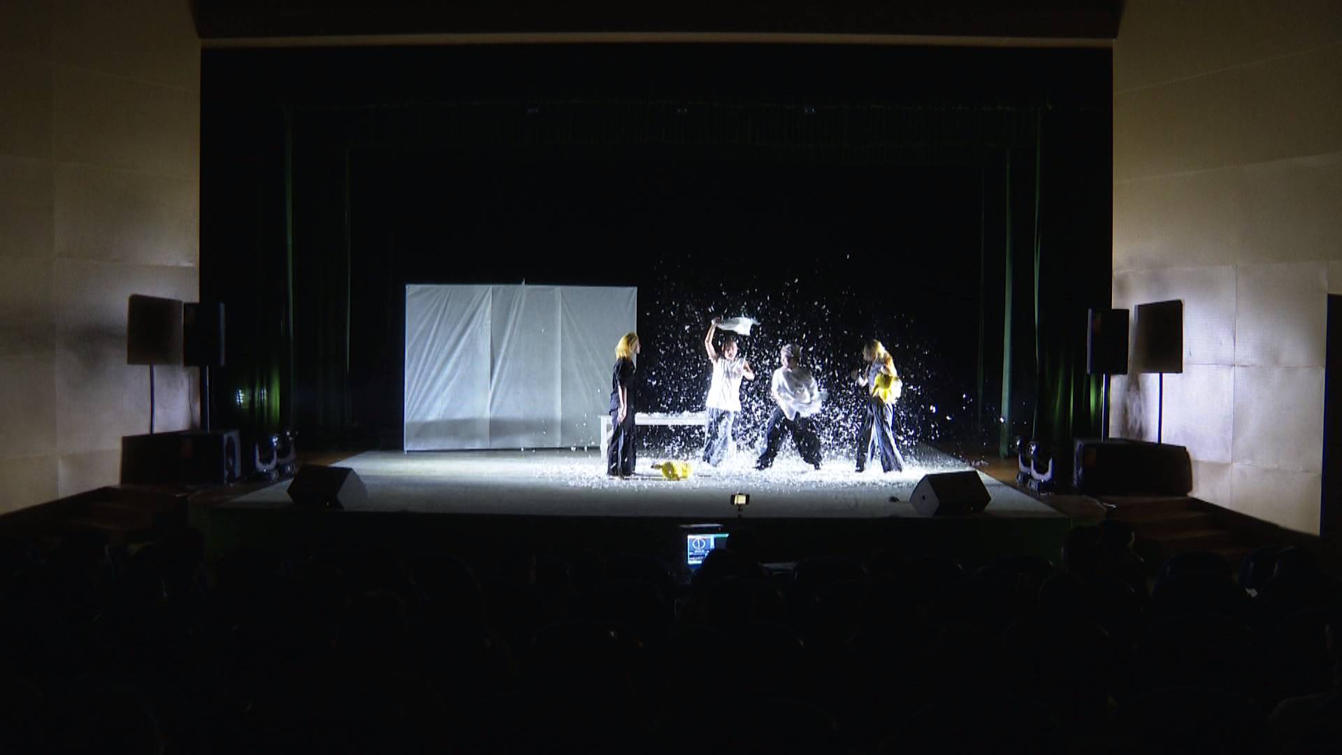 在县文化馆一楼小剧场,四个年青人以肢体动作和形体语言,配合环境创意,展现包括冥想感受、平衡关系、梦境画面具象化、情绪肢体片段、自我审视、童年记忆等内容,呈现出隐藏在意识深处的无尽奥秘,为观众提供更大的想象空间,引发情感共鸣。