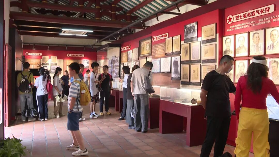 红宫红场旧址纪念馆内,游客有序观看展陈文物和历史图片,认真聆听讲解,深入了解彭湃同志光辉的革命生涯和崇高的精神风范。许多家长特意带领孩子前来,在参观中感悟红色历史,厚植家国情怀。