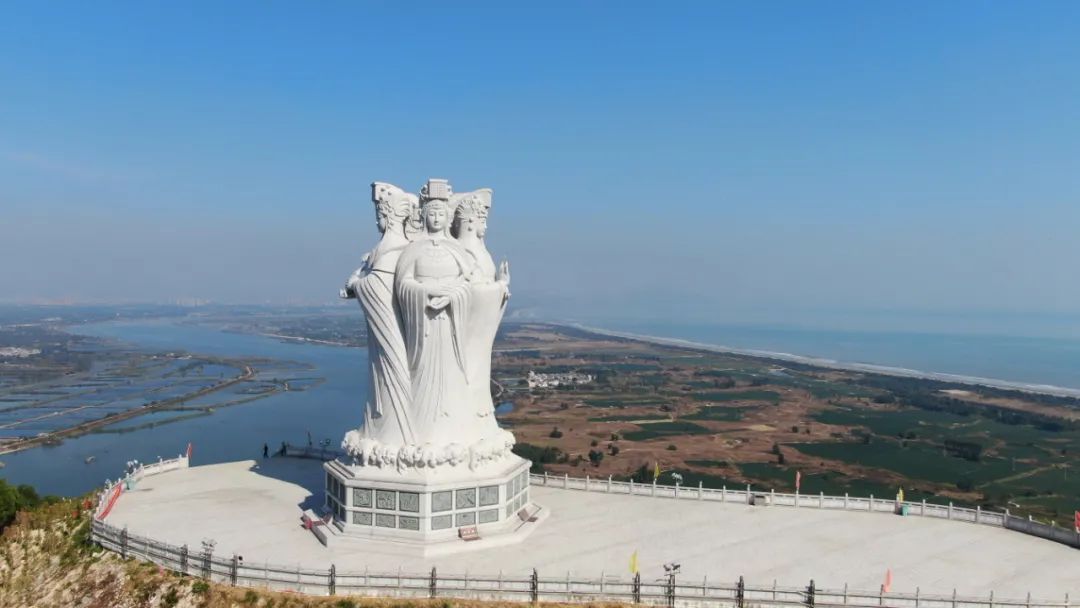 大德妈祖旅游区,灵川秀峰,浑然天成。拾阶而上,朝拜瞻仰。五身妈祖雕像屹立在凤地山上,自有一份玄妙、空灵的神韵。登高望远,湖光山色,众川赴海,一览无余。
