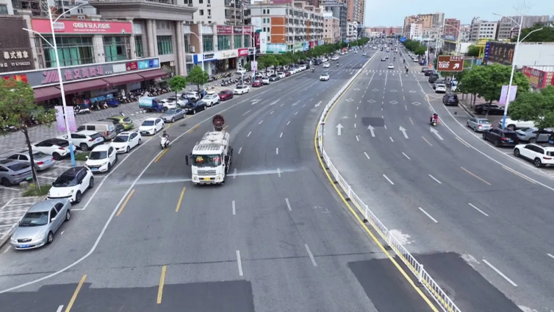 县城二环路等城市主次干道,海城镇采用“机械+人工”保洁模式集中清扫作业,同时落实抑尘、洒水车清扫、高压冲洗措施,彻底清除残留杂物和水渍,对重点区域生活垃圾增加收集频次。同时,聚焦垃圾桶易孳生蚊虫的高频区域,推进全域精细化消杀行动。