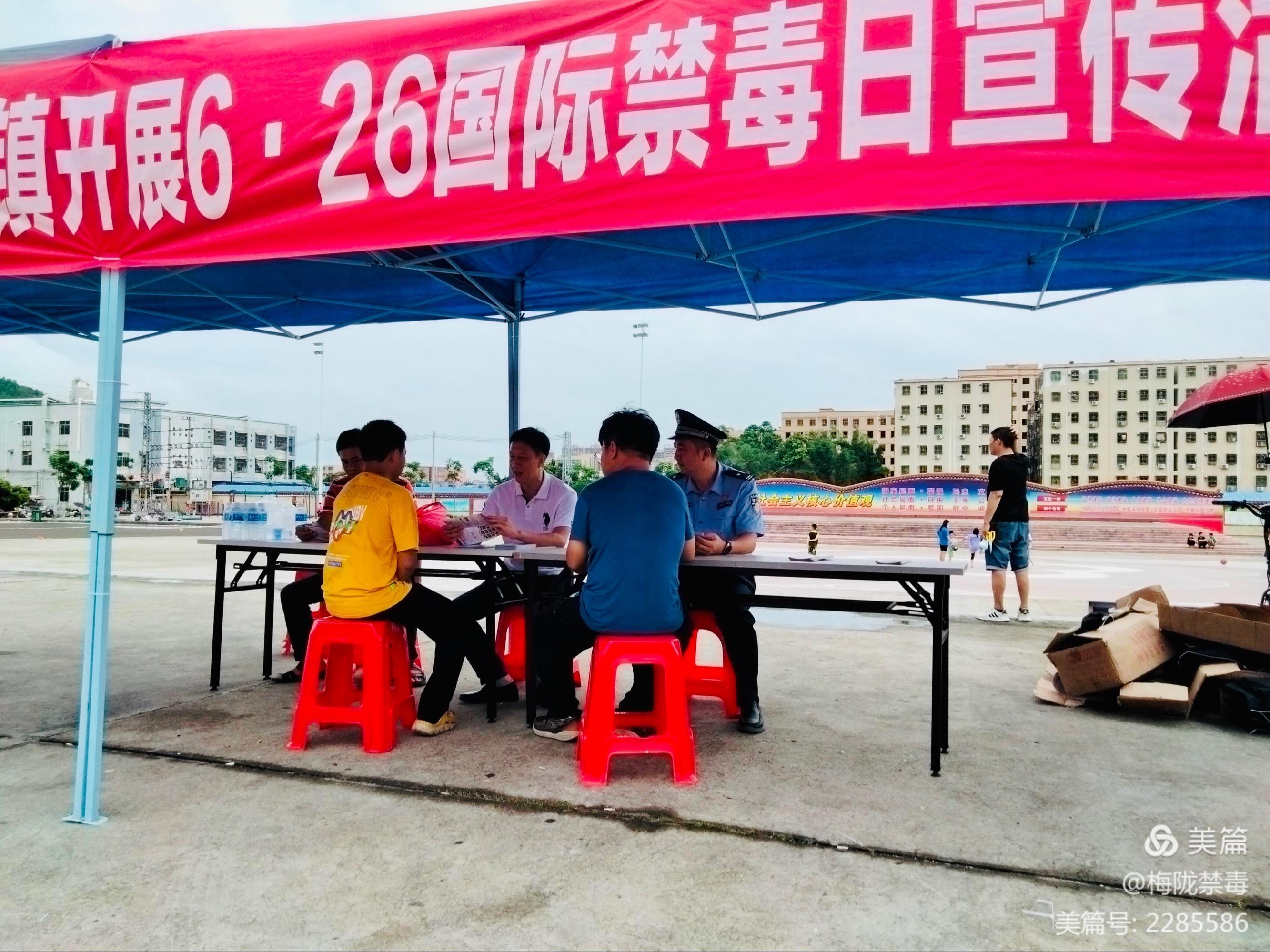 梅陇镇党委、梅陇镇禁毒办、梅陇派出所在文化广场举办“健康人生 绿色无毒”禁毒宣传活动。活动通过悬挂横幅、摆放宣传展板、发放宣传资料等方式展开,并向过往行人详细讲解毒品的危害,加深群众印象、筑牢毒品防控墙。