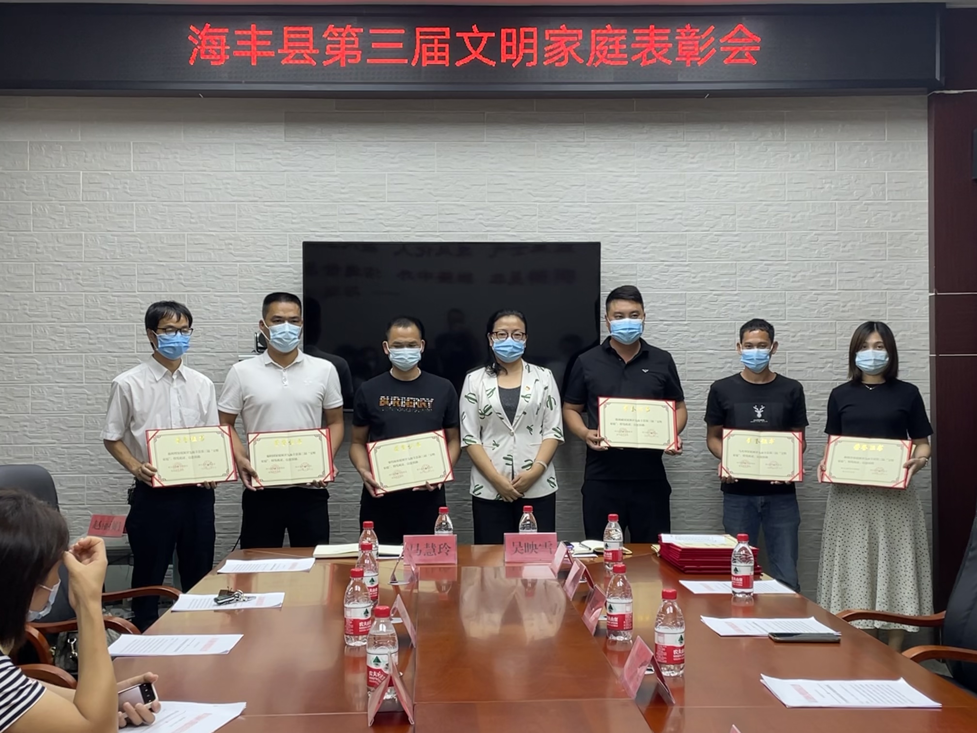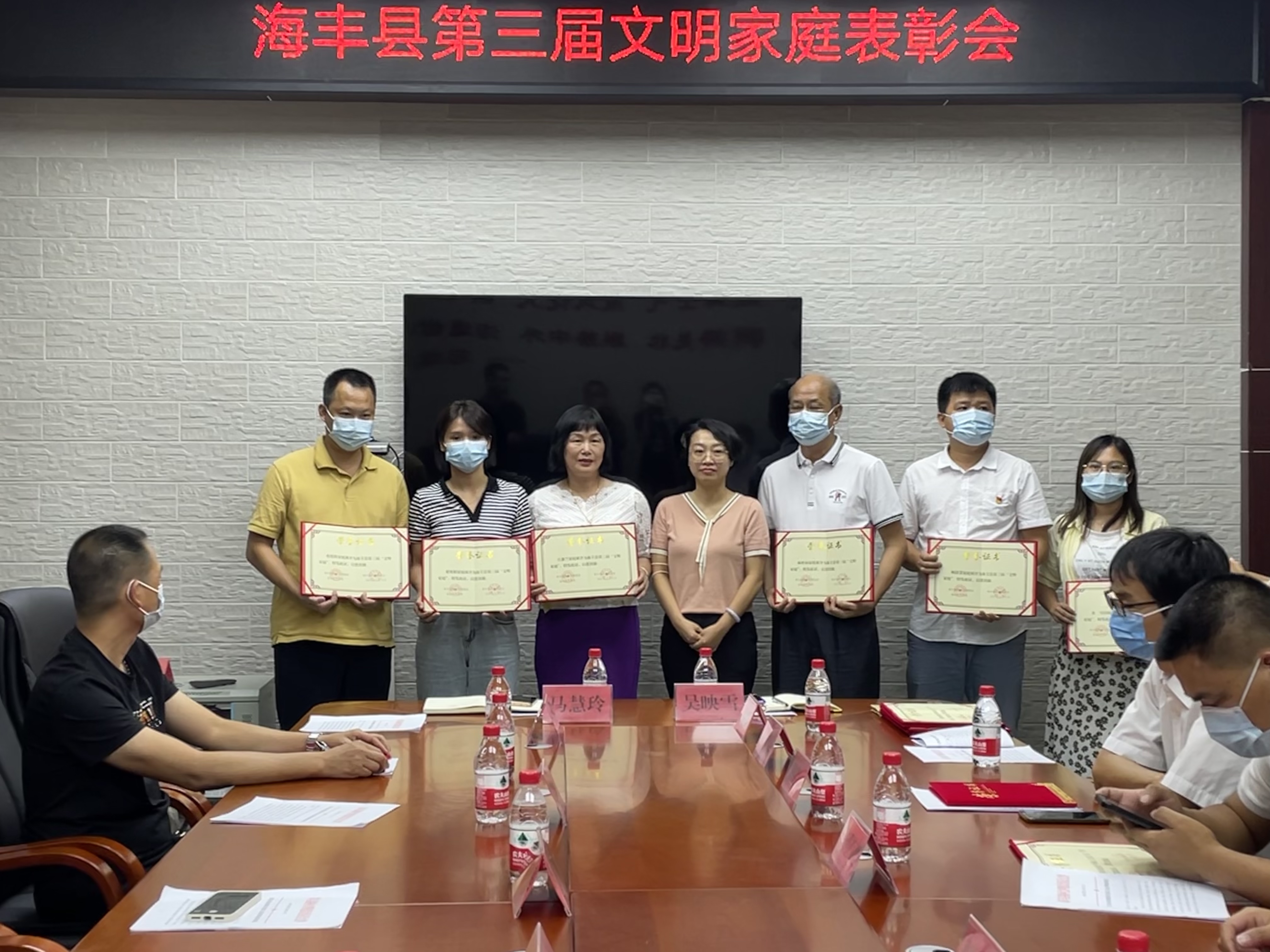 会上,县委宣传部三级主任科员马慧玲宣读表彰决定,授予陈辉明家庭等18户家庭为“海丰县第三届文明家庭”。
