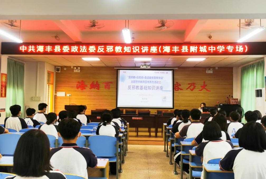为营造良好的校园反邪教宣传教育氛围,教育引导广大青少年识别邪教、抵制邪教,护卫校园净土,迎接中国共产党成立100周年,6月24日、25日县委政法委在附城中学、新城小学举行“反邪教基础知识讲座”。