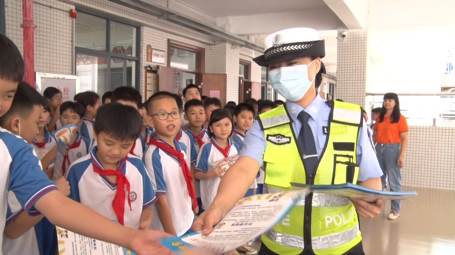 县公安局交警大队宣教股股长 王振:今天是秋季开学的第一天,我们海丰县公安局交警大队各个中队都派出宣传民警,到各个学校开展进校园的宣传工作,力争以点带面,在全县范围内形成一种重视学生安全教育的社会氛围。