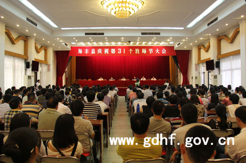 9月9日,我县在迎宾楼召开庆祝第31个教师节暨表彰大会,表彰一批优秀校长、优秀教育工作者、优秀班主任、优秀教师、学科带头人和2015年高考先进单位。深汕特别合作区党工委书记、县委书记沈木荣出席会议并作讲话;县长陈德忠主持会议;县委副书记林建隆宣读表彰决定。县领导冯月琴、姚英谋、卓凛波等出席会议。