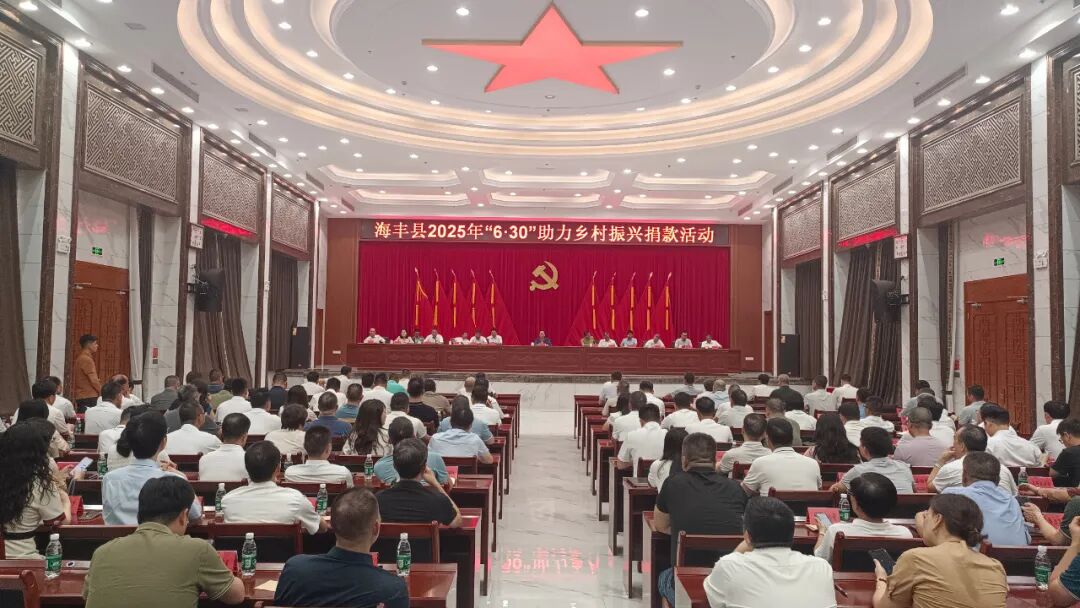 7月7日,海丰举行2025年“6·30”助力乡村振兴捐款活动,积极响应省委省政府、市委市政府的号召,广泛发动社会各界参与“6·30”助力乡村振兴活动,着力巩固拓展脱贫攻坚成果,增强农村地区内生发展动力,建设宜居宜业和美乡村。县委书记郭文炯,县委副书记、县长范秉康,县人大常委会主任肖勇科,县政协主席吴城池,县委副书记吴家宾、孙鹏等出席活动。