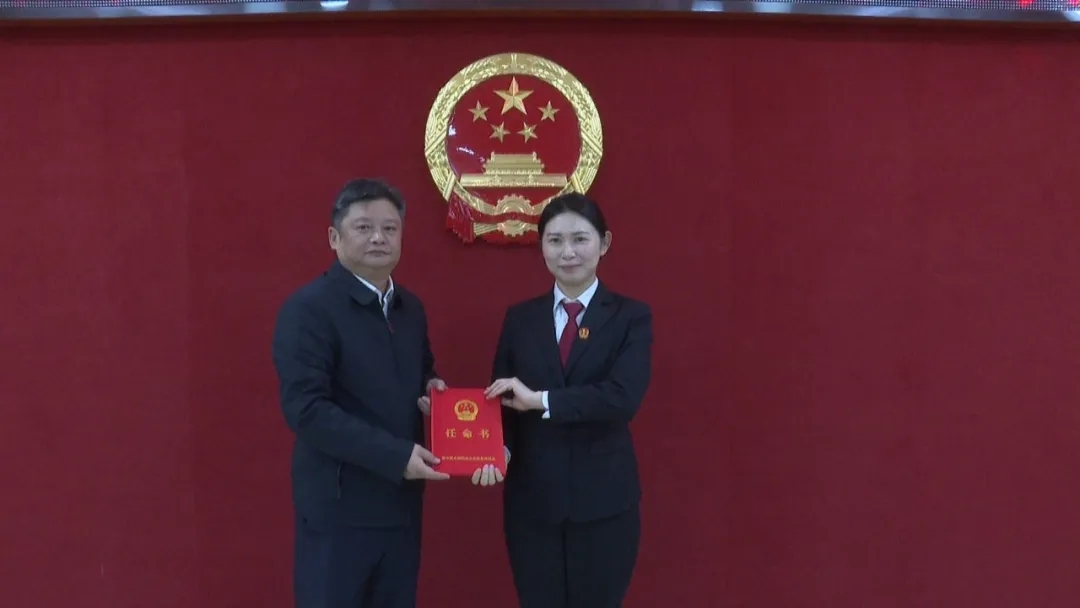 会议通过人事任免事项,任命陈江明、林宇斯为海丰县人民法院审判员,县人大常委会主任肖勇科颁发任命证书。