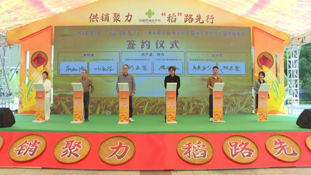 签约仪式上,海丰 6 家农特产品企业分别与深圳、广州等地的餐饮企业、食品供应链公司签订合作协议,为海丰农特产品走向粤港澳大湾区市场搭建起稳定通道。
