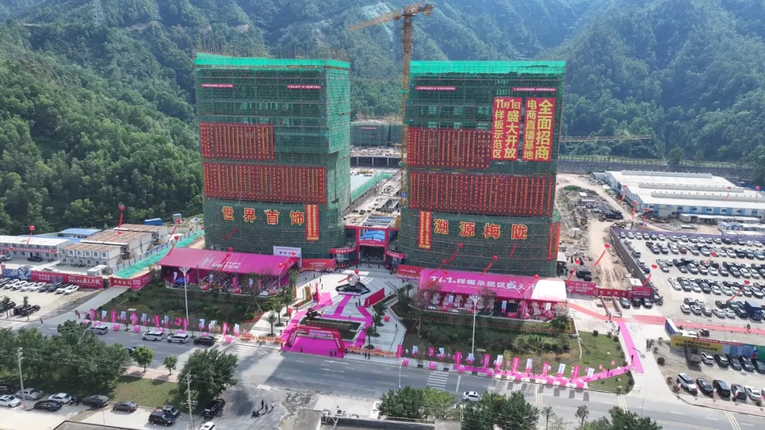 梅陇珠宝首饰国际商贸城位于梅陇镇东北部惠海路深坑岭路段,占地面积约15万平方米,计划总投资约15亿元,项目建成投产后,预计年销售收入70亿元,年利润3亿元,税收超2000万元,年可带动就业2000人。截至目前,该项目地下室结构工程已完成,地上主体结构已完成建筑面积约6.8万平方米,计划今年12月完成整体主体结构封顶,2026年5月实现工程全面完工。