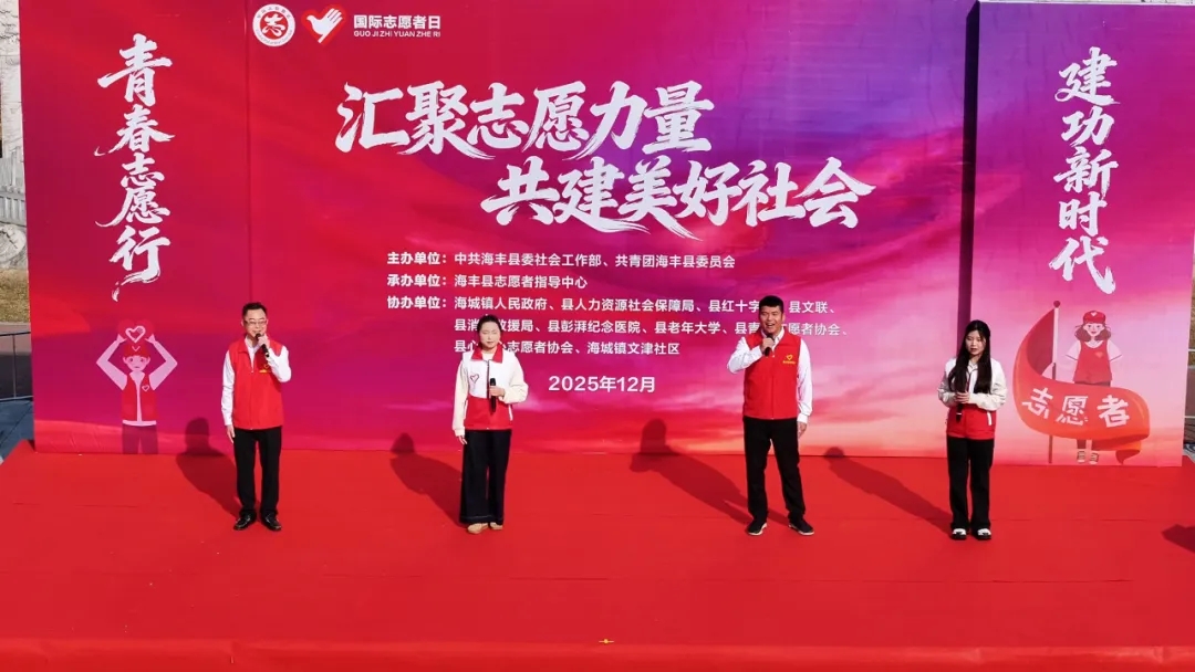 12月6日,海丰在县文化公园举行2025年“汇聚志愿力量 共建美好社会”国际志愿者月系列活动启动仪式,以活动为媒,集中展示海丰志愿服务的丰硕成果,彰显青年志愿者的青春风采,凝聚社会各界公益力量,弘扬“奉献、友爱、互助、进步”的志愿精神。县委副书记吴家宾出席活动并作讲话,县相关部门负责人、爱心商家代表、志愿服务组织以及志愿者代表等参加活动。