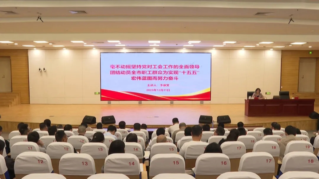报告会上,李惠文围绕“毫不动摇坚持党对工会工作的全面领导、团结动员全市职工群众为实现‘十五五’宏伟蓝图而努力奋斗”专题辅导。报告从“深刻认识始终坚持党的领导是工会组织与生俱来的政治基因”“准确把握党对工会工作领导的核心内涵”“把党的领导贯穿工会工作全过程各方面”等方面,系统阐述坚持党对工会工作全面领导的历史必然性、理论逻辑与实践要求,深刻剖析新征程上工会工作面临的新形势新任务,进一步提高全市工会组织和干部的综合素质,推动工会工作再上新台阶。