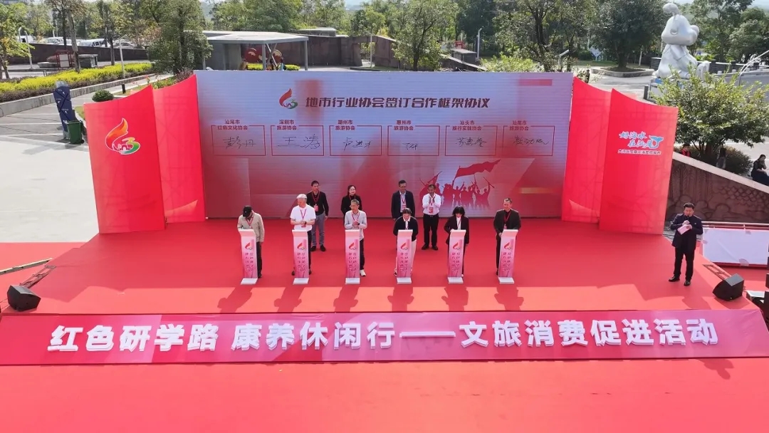 现场播放《红色汕尾·康养福地》主题宣传片,发布四条精心设计的红色研学与生态康养主题线路,举行首批战略合作单位的框架协议签约仪式。