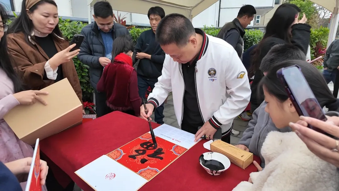 活动现场,书法爱好者挥春送祝福,将传统年俗与家国情怀、红色记忆巧妙结合,营造节日深厚氛围,让群众体验传统文化的魅力与民俗温情。