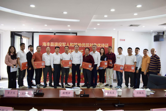 2022年11月9日,海丰县退役军人事务局召开退役军人和其他优抚对象优待证发放仪式,为申领优待证的退役军人代表颁发优待证。县退役军人事务局副科以上干部、优待证各工作指导组组长、局相关业务骨干、各镇(场)退役军人服务站负责人、工商银行、农业银行、邮政储蓄银行负责优待证办理工作人员、领证代表出席发放仪式。