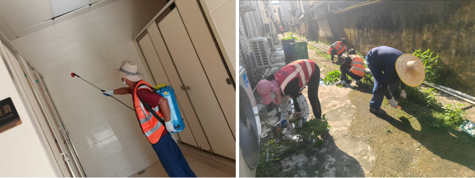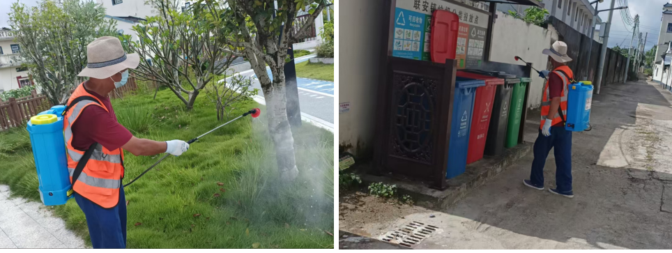 橙色战队一线消杀,精准作业覆盖“无死角”。针对镇域跨度大、防控点位散的难题,联安镇党委迅速召开专题部署会,创新“就地取材、整合资源”模式,组建以骨干保洁员为核心的“橙色流动消杀队”。由创卫办牵头统筹,统一配发全新背负式喷雾器、高效灭蚊药剂等专业设备,开展“理论+实操”专题培训,确保队员熟练掌握“消杀四步法”。这支“橙色铁军”实行“分片包段、每日打卡、责任到人”机制,在日常清扫基础上,重点对垃圾桶周边、下水道口、绿化带积水区等蚊虫孳生“重灾区”开展“早晚两次”高频消杀。通过“清扫-消杀-复查”一体化作业,实现全镇保洁点位、公厕、公园广场“日日全覆盖、处处无死角”,用“橙色防线”筑牢蚊媒防控的“铜墙铁壁”。