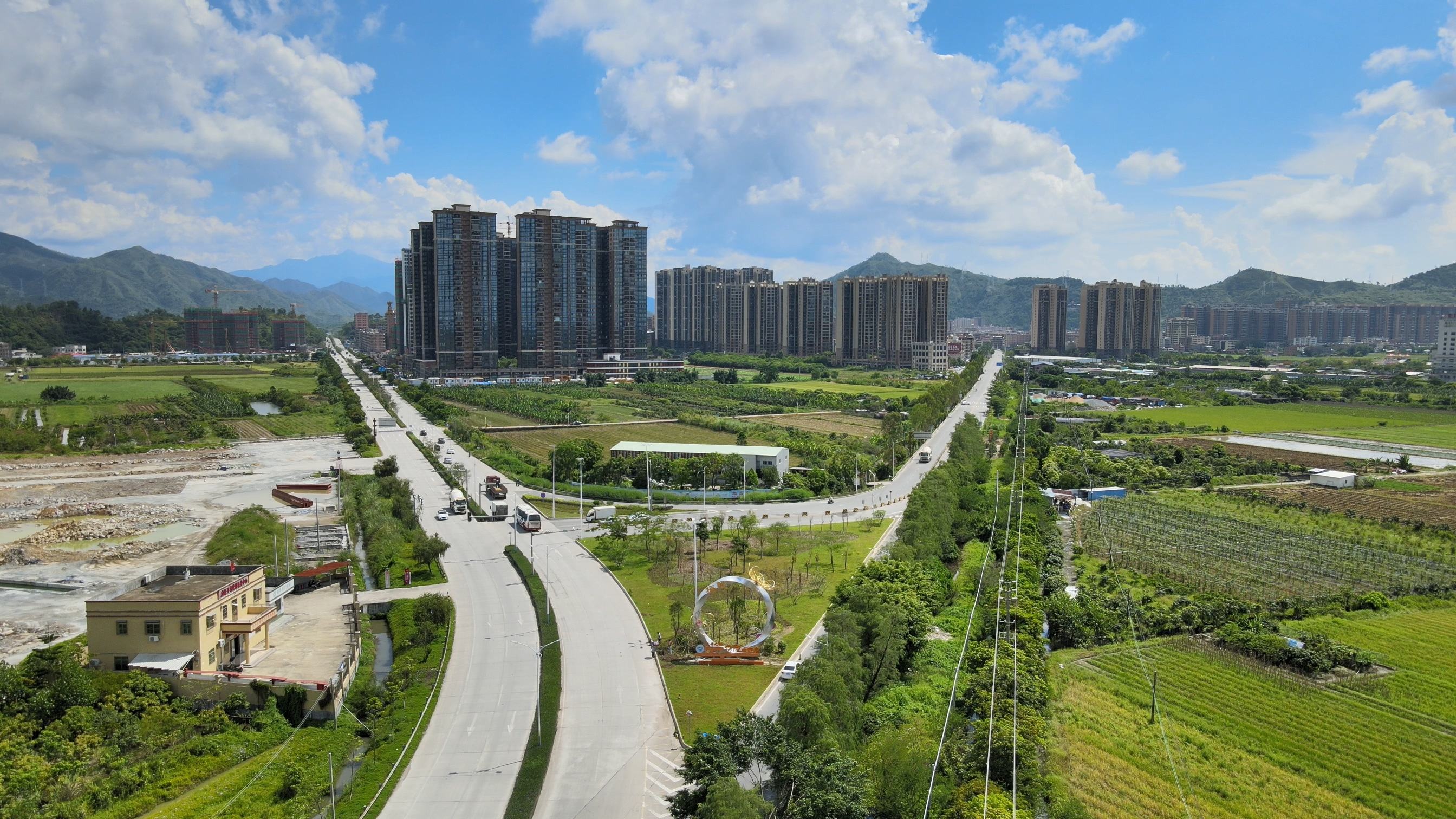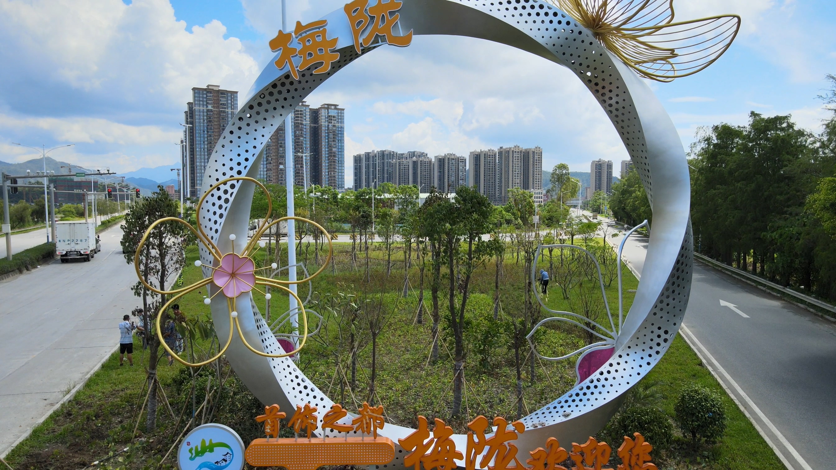 国道324线梅陇镇区南入口风貌提升改造项目效果格外显眼,主体建筑为一座钛金属安装的戒指雕塑,打造美丽圩镇耀眼地标,推动“首饰之都”焕发光彩。