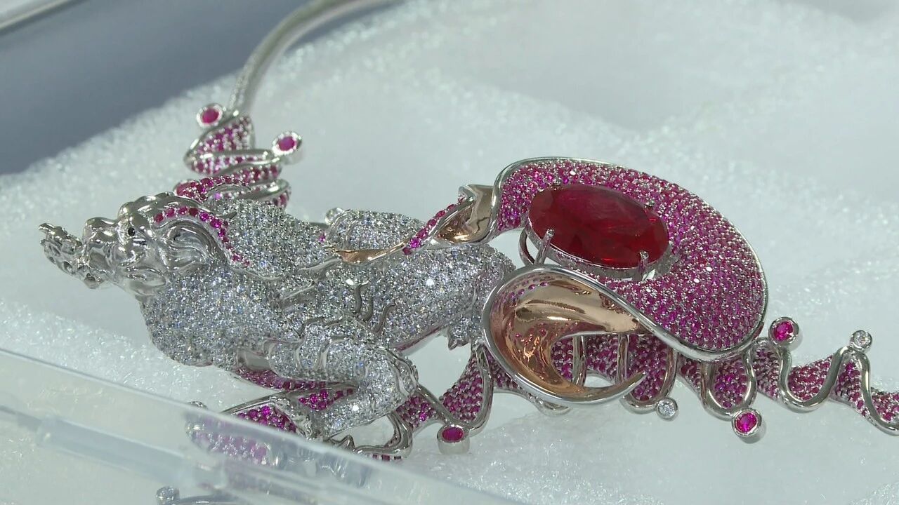 据了解,蕾恩珠宝首饰此次参展的文创产品颇具亮点,融合《山海经》《璀璨梨园》的文化内核新品惊艳亮相,吸引国内外采购商驻足观赏、洽谈合作。其中,“山海经”系列深挖“应龙”“貔貅”等经典形象,将奇幻图腾与金属、宝石巧妙结合,每件作品均附文化解说卡,详解纹样背后的神话内涵。同时,“璀璨梨园”取材于京剧、粤剧等传统戏曲,将戏曲造型之美与珠宝艺术相结合,让年轻群体感受传统文化魅力。